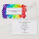 Un diseño brillante que ofrece un diseño brillantemente coloreado del arco iris de la acuarela en un fondo blanco con una caja blanca en el centro para su nombre y profesión.