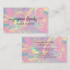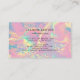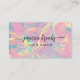 Destaca con esta elegante tarjeta de presentación que presenta un fondo iridiscente inspirado en el ópalo acentuado con brillo dorado brillante. Los tonos vibrantes de rosa, lavanda, verde menta y naranja suave crean un diseño moderno y femenino perfecto para profesionales de la belleza, estilistas de cabello y artistas de maquillaje. Esta estética lujosa es ideal para emprendedores creativos que buscan una forma chic y profesional de mostrar su marca. Resalta tu estilo único con este diseño de tarjeta impresionante y sofisticado.