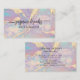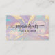 Crea una impresión deslumbrante con esta tarjeta de presentación iridiscente de color púrpura pastel que presenta acentos de purpurina dorada brillante. Los tonos suaves de lavanda, verde menta y azul cielo crean una estética soñadora y elegante, perfecta para profesionales de la belleza como estilistas de cabello, artistas de maquillaje y esteticistas. Diseñada para creativos modernos, esta tarjeta emana sofisticación y encanto, lo que la hace ideal para salones, negocios boutique y empresarias. Muestre su profesionalismo y estilo único con este impresionante diseño de tarjeta de presentación.