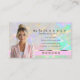 Opal Glow Elegance: La tarjeta de visita que enluta con el lujo. Eleva tu imagen profesional con la "Tarjeta de presentación Opal Rosa", un diseño elegante y minimalista en Zazzle. Esta tarjeta presenta un impresionante fondo iridiscente, opal, en tonos rosa, púrpura, azul y verde, enmarcado por un borde rosa y acentuado con bordes metálicos dorados y una banda. Elegante texto cursivo negro para tu nombre ("Aurora Grace") y título añade sofisticación. La parte trasera incluye un retrato e iconos de los medios sociales para una conectividad perfecta. Perfecto para profesionales que buscan una impresión pulida y memorable. Brilla de manera brillante — ¡agarra el tuyo de Zazzle hoy! #OpalGlow #GoldCharm #CardSimplicity