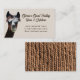 Brown llama business cards with text in two places. A simple and effective way to advertise a yarn shop, knitting business, fiber for sale, or knitwear pattern creator. Earthy tan cards with dark brown script and printed fonts. Include website, online presence, e-mail, shop address, or anything that fits the spaces. Garter stitch in camelid brown covers the back.