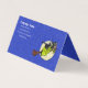 Este pliegue sobre la tarjeta de visita tiene una bruja graciosa con un vestido verde sujetando a su gorra mientras sobrevolaba una luna llena en su escoba con un gato negro montado sobre su espalda con un fondo azul intenso y profundo. Personalizar toda la información en la parte delantera, trasera y interior con las plantillas.