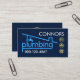 An all dark blue cover features a home "plumbing" pipeline design. Over at the top lies your prestigious name with three gold plumbing icons just underneath. Near the base of the card is your contact details.