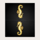 Artístico, poligonal, caballito de mar de chispa, Relieve metalizado dorado sobre fondo negro.