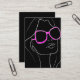 Tarjeta de visita retro y blanca. Destacar de la multitud con esta tarjeta de negocios de salud y belleza con una línea blanca de la cara de la mujer usando gafas de sol encaladas rosadas en un fondo negro. Cambie sus detalles completos en la parte posterior de la tarjeta haciendo clic en el botón "personalizar". Adapte este diseño a sus propios detalles de marca y negocios.