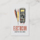 Tarjeta de negocios moderna de Electricista. Diseño con acuarela El logo de Electrician sobre un fondo gris brillante, el guión tipográfico ''Electricista'' en letras de moda y un nombre en la parte delantera. Personaliza más con tus datos de contacto en la parte posterior. Para editar, haga clic en los cuadros "Editar esta plantilla de diseño" en el lado derecho del elemento/ o haga clic en el botón azul "Personalizar" para organizar el texto, cambiar los tipos de letra y colores y también añadir información o imágenes adicionales a este diseño.