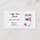Una tarjeta de bonito con una taza de café para llevar con una tapa rosa y acentos de flores rosas. Personalizar con toda la información de su negocio según lo desee.
