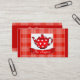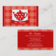 Tetera de polika punteada roja ilustrada enmarcada con una cubierta rojiza con una etiqueta de banner en la parte inferior para mostrar su nombre de negocio. Estas tarjetas de doble cara son perfectas para cafés lindos y acogedores, cocinas rurales, minoristas o hospitalidad. Imagen y nombre comercial en el frente y detalles comerciales en el reverso. Personalizar para satisfacer sus necesidades.