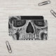 La cara de la cabeza del cráneo se acerca al diseño de textura creativa gótica grunge en blanco y negro. Tarjetas de visita profesionales de artistas de tatuaje. Único, fresco, moderno, de moda, de temible estilo vintage. Derechos de imagen de Marg Seregelyi Photography.