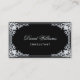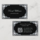 Una elegante tarjeta de visita que tiene un marco vintage con decoración barroca de imitación de oro en las esquinas. El fondo es negro. En el frente, el nombre" está escrito en un guión caligráfico elegante. Todo el texto es dorado, como el marco dorado. Tiene un código QR negro y dorado en la parte trasera, a la izquierda. El fondo con sus elegantes decoraciones barrocas proviene de un encuadernador de libros francés de época, de Georges Mercier (1885-1939) - Madame de Maupin por Theophile Gautier, volumen 1, edición 1911, París - ahora de dominio público.