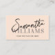 La caligrafía de escritura moderna nombra una tarjeta de negocios femenina elegante ideal para planificadores de eventos, estilistas de cabello, maquilladores, bloggers y otros profesionales. Fácil de editar estilo de fuente y colores de fondo.