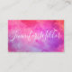 Este moderno diseño de tarjeta de visita incluye un hermoso fondo acuático rosa caliente con moda, escritura moderna de caligrafía en blanco. En el reverso aparece un fondo blanco limpio con texto negro. Simplemente agrega tu nombre e información de contacto. Tiene un aspecto moderno y de moda y le haría una primera impresión fabulosa para su negocio. Puede personalizar fácilmente este funda cambiando el tipo de letra del guión y la información de contacto.