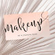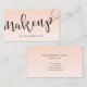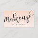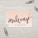 Elegante diseño minimalista de tarjetas de visita que incluye su nombre y texto de maquillaje en un moderno guión manuscrito, fondo rosa de color rosa gradiente y una información de contacto en el reverso lado.
