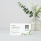 Tarjeta blanca de negocios con el color verde como el acento y una apariencia tranquila para cualquier profesión con tu información de medios sociales en forma de tu código QR personal y, en la parte trasera, una foto. Tarjeta de negocios de vegetación con brotes tranquilos de vegetación en verde sabio, adorables iconos de medios sociales y tu código QR.