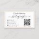 Este diseño de tarjetas de visita está diseñado específicamente para fotógrafos que buscan hacer una impresión memorable. Presenta una sorprendente obra de arte minimalista de una cámara blanca cremosa centrada en la tarjeta, que simboliza el arte del fotógrafo de una manera vibrante y moderna. Debajo de la cámara, el nombre del fotógrafo se muestra de manera prominente, seguido por "Fotógrafo" en una tipografía elegante y elegante, que añade un toque profesional y artístico. Aumente su red profesional con nuestra tarjeta de visita para fotógrafos diseñada por el personalizado. Centrada en una cámara verde representada artísticamente, esta tarjeta capta la esencia de tu pasión fotográfica y te posiciona como un destacado creativo. La tipografía elegante y los detalles personalizados subrayan su identidad profesional, mientras que el código QR incluido ofrece una opción moderna y fácil de conectar y explorar para clientes potenciales. Ideal para los profesionales de la fotografía ansiosos por dejar una impresión duradera, esta tarjeta de visita combina la funcionalidad con un estilo distinto, asegurando que su información de contacto no sólo se comparta, sino que se recuerde.