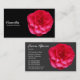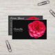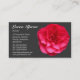 Una tarjeta de visita con una Camelia Roja. Nombre comercial, etc. en la parte delantera, con otros detalles al revés con el mismo motivo y estilo.