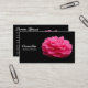 Una tarjeta de visita con un motivo de foto rojo de Camelia. Nombre comercial, etc. en la parte delantera, con otros detalles al revés con el mismo motivo y estilo.
