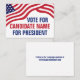 Candidato a campaña política personalizable con la bandera estadounidense encima de tu texto en rojo, blanco y azul. Añada su elección para presidente u otro cargo político en las elecciones de 2024. Texto personalizado negrita.