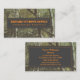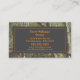 Una tarjeta de visita con fondo de camuflaje en la parte delantera y trasera con texto naranja. Personalice el texto delante y atrás con su nombre e información de contacto.