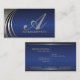 Metalizado azul gris plateado, monograma tarjetas de visita atractivas. Un diseño moderno, con curvas metalizado de color gris plateado con contorno negro y tu monograma/inicial sobre fondo azul gradiente. Haga clic en "Personalizar" para tener un mejor resultado y elegir color, y lugar para su inicial. Perfecto para muchos campos industriales, construcción, seguros, financieros, ingenieros y más.
