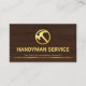 La cubierta tiene un diseño de grano de madera con una línea dorada cerca de la base de la tarjeta. En la parte superior se encuentra el logotipo de un martillo dorado que se puede usar con el nombre de la empresa y una opción de subtítulo de eslogan que se puede cambiar justo debajo. Al dorso, se utiliza el mismo tema de diseño con el logotipo dorado en la parte superior seguido de tu prestigioso nombre, los detalles de contacto y una opción de subtítulo de eslogan. Todas las letras están en oro falso. Una tarjeta para que todos usen especialmente carpintería y reparadores de casas. #carpintero #carpentry #construccion #constructor #handyman #homerepair #contratista de construcción #contratista general #remodelación #renovación #martillo #zazzlemade