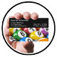 Esta plantilla de tarjeta de negocios para temas de billar tiene una colorida imagen gráfica de cerca de bolas de billar y texto que puedes personalizar en línea para tu salón de billar, sala de billar o bar deportivo.