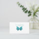 Diseño de tarjetas de visita artesanal y artístico creado con un purpurinoso y brillante gráfico de mariposa de color verde azulado y su nombre de negocio presentado en la parte delantera. Una plantilla en línea editable para una tienda minorista, tienda en línea o clase independiente de artesanía de la industria de las artes y la artesanía.