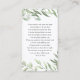 Esta tarjeta de oración es de doble cara, y se puede personalizar con tu redacción para honrar a tu ser querido en un funeral, monumento o celebración de la vida. La opción de papel de seda premium proporciona laminación y es resistente al agua y a las lágrimas. Las tarjetas cuentan con obras de arte de vegetación.