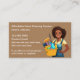 Sencillas tarjetas de negocios de limpieza de casas diseñadas con un gráfico de una dama afroamericana de limpieza y un sencillo texto editable que puedes personalizar en línea. Las mejores tarjetas de visita para un servicio de limpieza en casa, una empleada doméstica o un cuidador.
