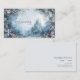 Defina su marca con una imaginación ilimitada y la elegancia mágica de un reino oculto utilizando esta cautivadora tarjeta de presentación. El diseño lo transporta a un bosque de pinos etéreo y envuelto en niebla, donde un magnífico castillo gótico con torres imponentes se encuentra anidado entre densos árboles de tonos azules. La escena está dominada por una niebla blanca pesada y luminosa que llena el centro, contrastando con el bosque helado y la luz suave y difusa en lo alto. El primer plano está lujosamente enmarcado por una abundante y estratificada frontera de flores silvestres púrpuras, azules y blancas, creando un arco vibrante y romántico alrededor de los bordes. La textura suave y pictórica transmite una sensación de asombro, romance y elegancia de alta gama que hace que su tarjeta sea verdaderamente inolvidable. Esta tarjeta de presentación es ideal para un planificador de eventos de lujo especializado en celebraciones temáticas o bodas de fantasía, un hotelero boutique que desee transmitir un entorno mágico y único, o un novelista de fantasía o desarrollador de juegos que busque una marca distintiva y narrativa. También sería perfecta para un vendedor de impresiones de arte fino centrado en obras místicas o románticas, o un diseñador floral exclusivo que enfatice arreglos ricos y abundantes. La cautivadora combinación de la tarjeta de paisajes encantados y flores púrpuras abundantes asegura que sea vers