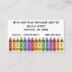 Características del este diseño algunos creyones felices. ¿Usted posee su propio negocio de la guardería? Estas tarjetas de visita lindas son grandes para usted. El TEXTO se puede modificar para requisitos particulares con su propia información yendo a las cajas de texto y cambiándolas.