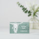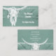 Estas tarjetas de negocios horizontales personalizados occidentales presentan un cráneo de vaca de cráneo de toro de vaquero verde azulado en un granero de textura de grunge de campo. Estilo vintage, rústico diseño antiguo de estilo salvaje inspirado en el oeste. Guay, un animal de granja de moda. Derechos de imagen de Marg Seregelyi Photography.