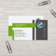 Un diseño simple centrado en columnas rectangulares. En verde la columna sienta su nombre y cargo. Directamente abajo, hay un rectángulo verde vertical fino que acompaña los botones sociales verdes del icono para sus detalles de la tarjeta. En la pared derecha, hay un rectángulo gris grande que tiene el logotipo y su nombre comercial invertido al lado del lado. A la vuelta, la tarjeta tiene dos porciones. El pedazo blanco superior tiene el logotipo y el nombre comercial. La columna verde directamente por debajo tiene los detalles del negocio junto con su opción del tagline del lema. Si usted decide cargar una foto en vez de un logotipo, las dimensiones son el pix 1.000 x 1.000. Este diseño tiene porciones de opción que permita que usted modifique la tarjeta para requisitos particulares. Esta tarjeta sería grande especialmente para las cabezas de las compañías o del jefe próximo en usted.