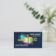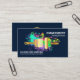 Una cubierta azul oscuro se acentúa con un diseño colorido y llamativo con pinceles dorados. En la esquina superior está tu prestigioso nombre y título de trabajo con el nombre de la empresa y los datos de contacto en la base de la tarjeta. En la parte superior hay un logotipo de pincel de rodillos dorados que se puede usar. A esto le sigue el nombre de la empresa, sus datos de contacto y la opción de subtítulo del lema para dar a conocer sus servicios. Una gran tarjeta para pintores.