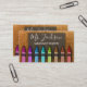 El falso purpurina dorado brilla detrás de una serie de crayones coloridos dispuestos en un patrón arcoiris. Actualice fácilmente el nombre, el título del trabajo y la información de contacto en la parte delantera y posterior. El guión y los tipos de letra del tablero se utilizan para imitar el aula de un profesor. Disponible en muchos otros colores brillantes.