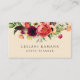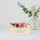 Las flores, las plumas y el follaje bohemios del estilo de la acuarela elegante en sombras elegantes de la púrpura, de Borgoña, del rosa, del melocotón y del verde con acentos geométricos del oro encendido apoyan, las tarjetas de visita. El color de fondo, mostrado en champán, puede ser modificado para requisitos particulares.