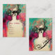 Mujer elegante y caprichosa con una sofisticada máscara veneciana de plumas en vivos colores rosa, verde, fucsia, negro y blanco, inspirada en la Comedia del Arte (Commedia dell' Arte) y el Carnaval de Venecia , pintura acuarela con Relieve metalizado dorado y plateado.