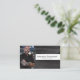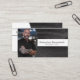 El cuero negro resalta el fondo de este diseño de tarjeta de presentación que presenta un marcador de posición de foto a la izquierda con el nombre y título de la plantilla a la derecha. La parte posterior incluye un diseño y colores coordinados con campos de texto para el nombre y detalles comerciales. Reemplace la foto del marcador de posición con su fotografía en formato vertical. Rellene los campos de la plantilla o haga clic en personalizar para seleccionar un estilo de fuente, tamaño y color que le guste. La foto del marcador de posición es cortesía de pexels.com.