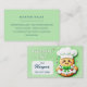 Una tarjeta de visita verde pastel diseñada para cocineros y panaderos personales, con un encantador chef de pan de jengibre y un divertido tipo de letra inspirado en la glicinia. Ideal para los amantes de los postres y los comensales.