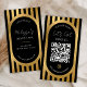 Tarjeta De Visita Chic Black & Gold Stripes Social Media QR Code