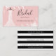 Beautiful and stylish bridal wedding themed business card design featuring our hand-drawn bridal blush pink wedding dress illustration hanging on a vintage black hanger. Personalize with your company name and website. The reverse side is designed with a trendy and modern black white stripe design with personalized name and contact information displayed within the stripes. This beautiful wedding dress business card is prefect for a wide range of businesses in the wedding industry including wedding dress, wedding planner, wedding consultant, wedding dress business and so much more. You can customize the font and layout and background color for your own personal design preference. All illustrations contained in this beautiful blush pink wedding dress business card design are hand-drawn original artwork by Moodthology.