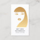 Un ilustracion elegante y atemporal de la cara de un chica en un gradiente de tono dorado le da un toque sofisticado a este moderno diseño de tarjetas de visita. Perfecto para los que se dedican al negocio de la belleza y el estilo, peluquerías, maquilladores, bloggers de moda, etc. © 1201AM CREATIVE