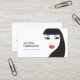 Un ilustracion gráfico en blanco y negro de una cara de chica con labios rojos y bangs elegantes se convierte en un identificador llamativo en este diseño clásico de tarjetas de visita. Perfecto para los que se dedican a la moda, peluquería, spas, etc. © 1201AM CREATIVE
