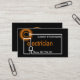Una cubierta negra incluye un circuito de cableado "electricista" creativo. En la parte superior, cerca de las mentiras iluminadas, está tu prestigioso nombre. Los datos de contacto telefónico se encuentran cerca de la toma de corriente en la base de la tarjeta. Al dorso, un falso logotipo de enchufe dorado que puedes usar está en la parte superior. A esto le sigue su prestigioso nombre y los datos de contacto. Una tarjeta creativa hecha para los electricistas.