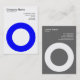 Una plantilla de tarjeta de visita con un círculo cerrado o símbolo "O" en la parte delantera. Nombre de la empresa, tipo de negocio y dirección en el frente con nombre, cargo, telefonía, web y direcciones de correo electrónico en la parte posterior, con un diseño similar en un fondo gris con una repetición del símbolo frontal en blanco. Esta tarjeta también se puede personalizar más.