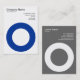 Una plantilla de tarjeta de visita con un círculo cerrado o símbolo "O" en la parte delantera. Nombre de la empresa, tipo de negocio y dirección en el frente con nombre, cargo, telefonía, web y direcciones de correo electrónico en la parte posterior, con un diseño similar en un fondo gris con una repetición del símbolo frontal en blanco. Esta tarjeta también se puede personalizar más.