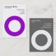 Una plantilla de tarjeta de visita con un círculo cerrado o símbolo "O" en la parte delantera. Nombre de la empresa, tipo de negocio y dirección en el frente con nombre, cargo, telefonía, web y direcciones de correo electrónico en la parte posterior, con un diseño similar en un fondo gris con una repetición del símbolo frontal en blanco. Esta tarjeta también se puede personalizar más.