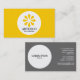 Una plantilla de tarjeta de visita con un diseño de círculo simple pero llamativo. Esta versión tiene un motivo de símbolo Art Deco que puede utilizarse tal como está o sustituirse por un logotipo o decoración diferente Nombre de la empresa y tipo de negocio en la parte delantera, con el nombre y otros datos de contacto en la parte inversa utilizando el mismo motivo de círculo situado a un lado.