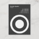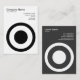 Una plantilla de tarjeta de visita con un círculo cerrado o símbolo "O" en la parte delantera. Nombre de la empresa, tipo de negocio y dirección en el frente con nombre, cargo, telefonía, web y direcciones de correo electrónico en la parte posterior, con un diseño similar en un fondo gris con una repetición del símbolo frontal en blanco. Esta tarjeta también se puede personalizar más.