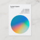 Una plantilla de tarjeta de visita con un atractivo motivo de círculo de gradiente en negrita. Nombre de la empresa, tipo de negocio y dirección en la parte delantera con nombre, cargo, telefonía, dirección web y correo electrónico en la parte posterior, con el mismo diseño. Un diseño geométrico abstracto moderno y nítido adecuado para muchos tipos de negocios y usos.
